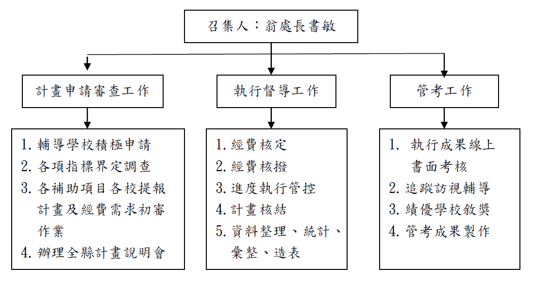 貳、組織架構及工作任務(小組人員名單詳見分工表):